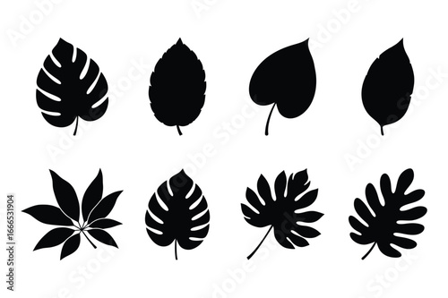 Fototapeta premium Tropical Leaf Silhouette Vector Set Monstera Collection