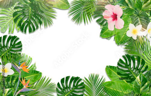 © neirfy, Naklejka premium Tropical leaves and flowers over transparent background