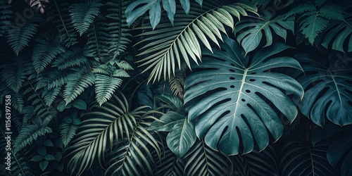 Fototapeta premium Tropical leaves background with beautiful colors