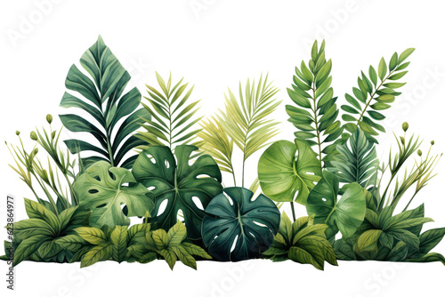 © Rawf8, Fototapeta premium Tropical leaves banner isolated on transparent background, PNG. Fresh tropic plant leaf variety.