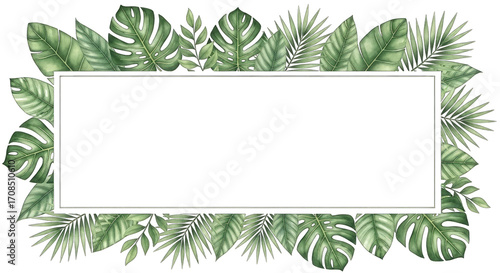 © Razia, Fototapeta premium Tropical Leaves Border with Rectangular Black Space isolated on a transparent background