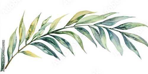 © Sabina Gahramanova, Naklejka premium tropical leaves clipart set, watercolor palm and fern vector illustration on white background