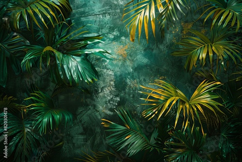 © Sandu, Fototapeta premium Tropical leaves on a green background