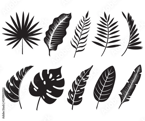 Obraz premium Tropical leaves realistic leaf silhouette collection