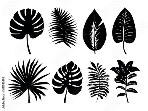 Obraz premium Tropical leaves vector illustration of different types of foliage silhouette design element