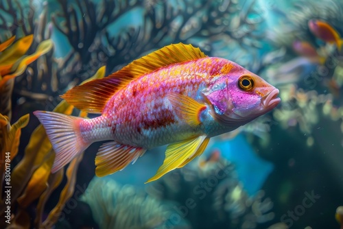 Naklejka premium Tropical marine paradise. Snapper fish in tranquil clear seas with colorful...