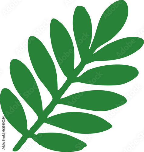 Naklejka premium Tropical Natural Leaf Illustration, Isolated Background. Soft and Sleek Green Botanical Shape, Nature-Inspired Decorative Design
