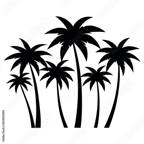 Fototapeta premium Tropical Oasis Silhouette: An array of stylized palm trees reaches towards...