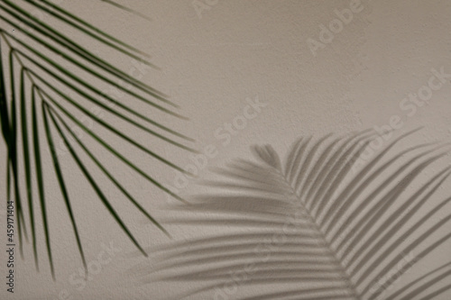 © New Africa, Obraz premium Tropical palm branch casting shadow on light wall