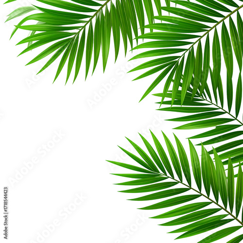 © muh, Obraz premium Tropical palm fronds frame a dark background