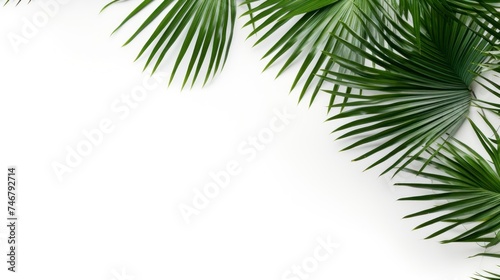 © Voilla, Obraz premium Tropical palm leaves on white background. Flat lay, top view