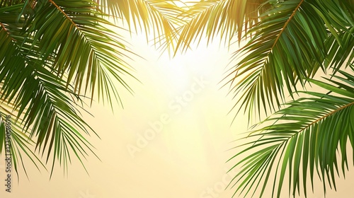 Fototapeta premium Tropical palm leaves sunlight background, summer vacation design