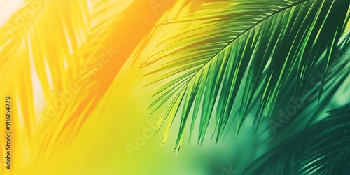 Obraz premium Tropical Palm Leaves with a Vibrant Green to Yellow Gradient Background