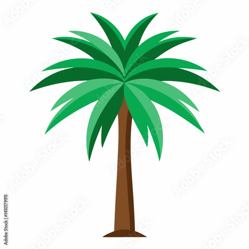 © MST RABEYA BEGUM, Obraz premium Tropical Palm Tree Illustration With Green Leaves And Brown Trunk Isolated On A White Background Depicting Summer Vacation