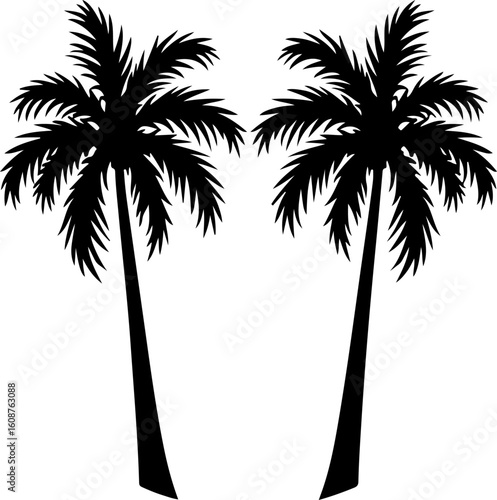 © Abu, Obraz premium Tropical Palm Tree Island Silhouette Vector