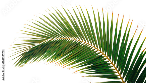 © Farah Khan, Obraz premium Tropical palm tree leaf isolated on white, a green nature frond for summer designs