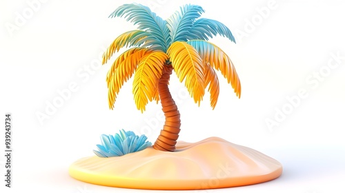 Fototapeta premium Tropical Palm Tree on Sandy Beach - 3D Summer Illustration