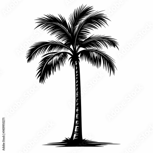 Obraz premium Tropical Palm Tree Silhouette. Black and White Botanical Illustration for Exotic Beach Vibes