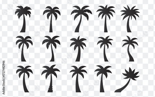 Obraz premium Tropical Palm Tree Silhouette Icons Set Collection