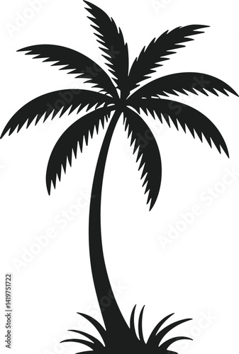 © MdImran, Obraz premium Tropical Palm Tree Silhouette Vector – Summer Island Vibe Graphic for Beach Themes