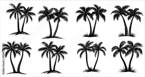 Fototapeta premium Tropical palm tree silhouettes vector design. Vector set of palm tree silhouettes. Beautiful palm tree silhouettes vector art. Palm tree silhouettes for summer designs