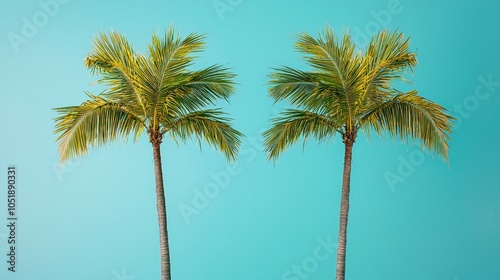 Obraz premium Tropical Palm Trees Against Blue Background