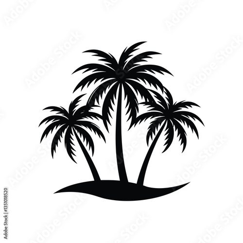 Obraz premium Tropical Palm Trees Silhouette – Vector Island Scene, Sunset, Minimalist...