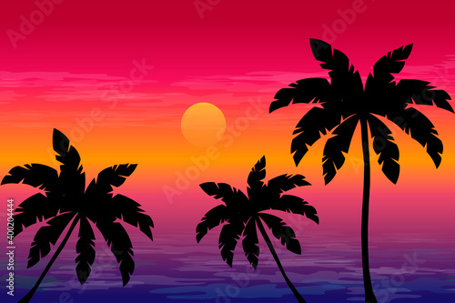 © LaMarK, Obraz premium tropical palms at sunset