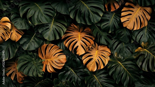 Naklejka premium Tropical Paradise: A Lush Tapestry of Monstera Leaves