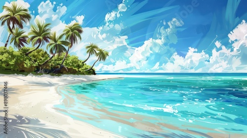 © Iswanto, Fototapeta premium Tropical Paradise: A Serene Beachscape