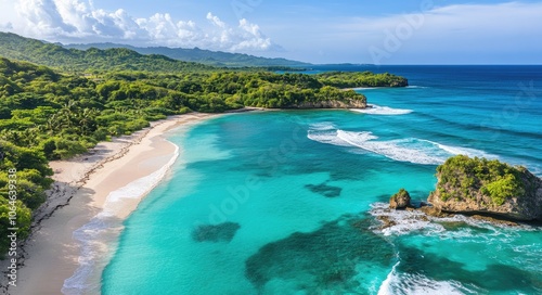 Fototapeta premium Tropical Paradise: A Stunning Aerial View of a Pristine Turquoise Beach