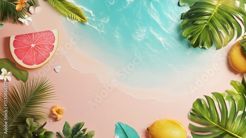 Naklejka premium Tropical paradise with citrus fruits and lush greenery for summer vibes