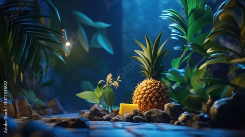 © Riya, Fototapeta premium tropical paradise with pineapple and lush foliage