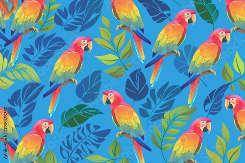 Obraz premium Tropical parrots surrounded by lush foliage in vivid colors, creating a...