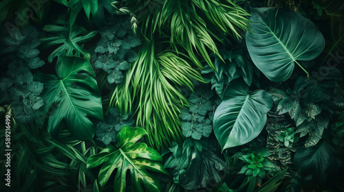 © ArturSniezhyn, Fototapeta premium Tropical plant leaves background image, direct view