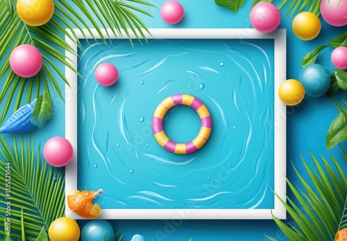 © matoya, Obraz premium Tropical pool summer fun framed illustration