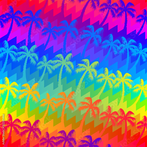 Naklejka premium Tropical rainbow palm trees seamless pattern