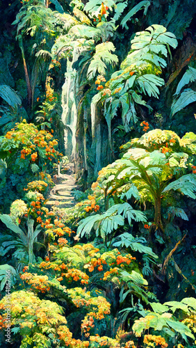 Fototapeta premium Tropical Rainforest Landscape Tropical forest illustration Generative AI Content by Midjourney