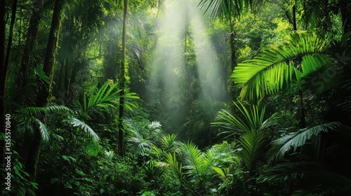 Fototapeta premium Tropical Rainforest Sunrise Lush Green Paradise.