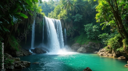 © Burak, Fototapeta premium Tropical Rainforest Waterfall Cascading Over Rocks