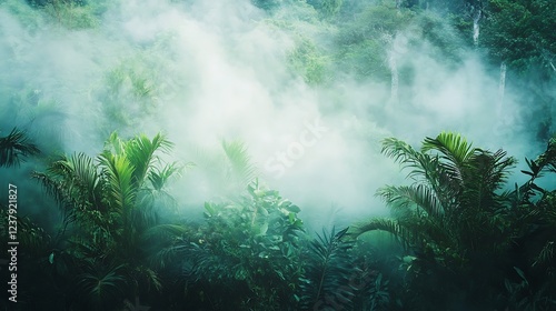 © MDSADDAM, Obraz premium Tropical rainforest with fog and mist. Nature background