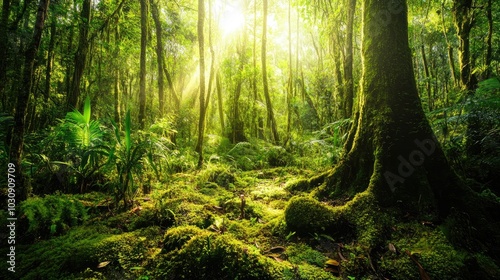 Fototapeta premium Tropical rainforest with trees and moss
