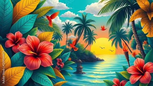 © PomPam, Naklejka premium "Tropical Retro Pattern