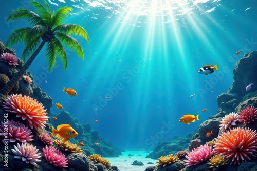 Naklejka premium Tropical sea scenery with diverse marine life, fish, tropical, coral