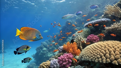 Fototapeta premium tropical sea underwater fishes on coral reef aqua