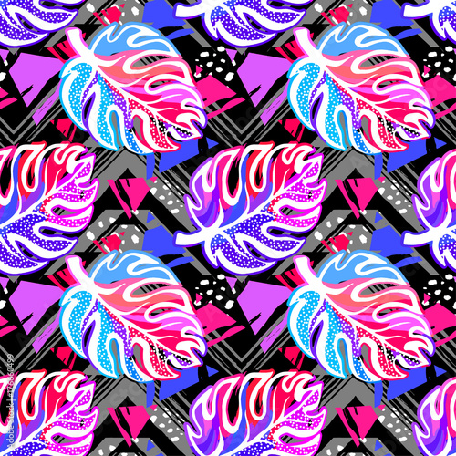 Fototapeta premium Tropical seamless exotic leaves vector pattern.