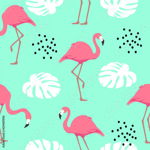 © viktorijareut, Obraz premium Tropical seamless flamingo pattern.