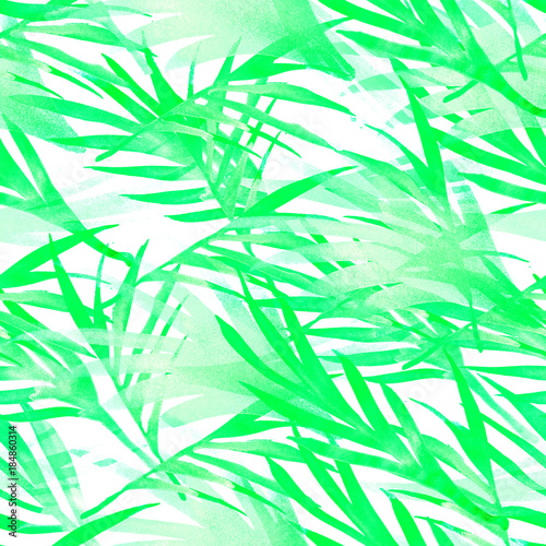 © graficanto, Naklejka premium Tropical Seamless Summer Pattern Design. Painted Bohemian Botanical Background Watercolor Summer Jungle Texture. Paper Seamless Summer Pattern Design. Bright Fashion Fabric Textile Design