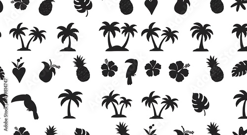 © John, Fototapeta premium Tropical Silhouette Pattern: Black & White Island Paradise