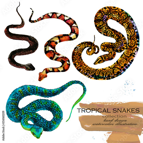 © Елена Фаенкова, Naklejka premium tropical snakes hand drawn watercolor illustration set